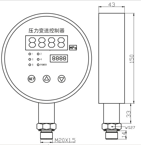 PYK150智能壓力控制器是集壓力測量、顯示、輸出、五路控制于一體的智能數(shù)字壓力測控產(chǎn)品。不銹鋼接頭、擴(kuò)散硅壓力芯體、全數(shù)字電路板組成,顯示直觀,操作簡單,安全可靠,開關(guān)點(diǎn)現(xiàn)場設(shè)置。廣泛應(yīng)用于水電、自來水,石油、化工、機(jī)械、液壓等行業(yè),對流體介質(zhì)的壓力進(jìn)行測量和控制,并可遠(yuǎn)傳輸出(4-20mA)及RS485組網(wǎng)。